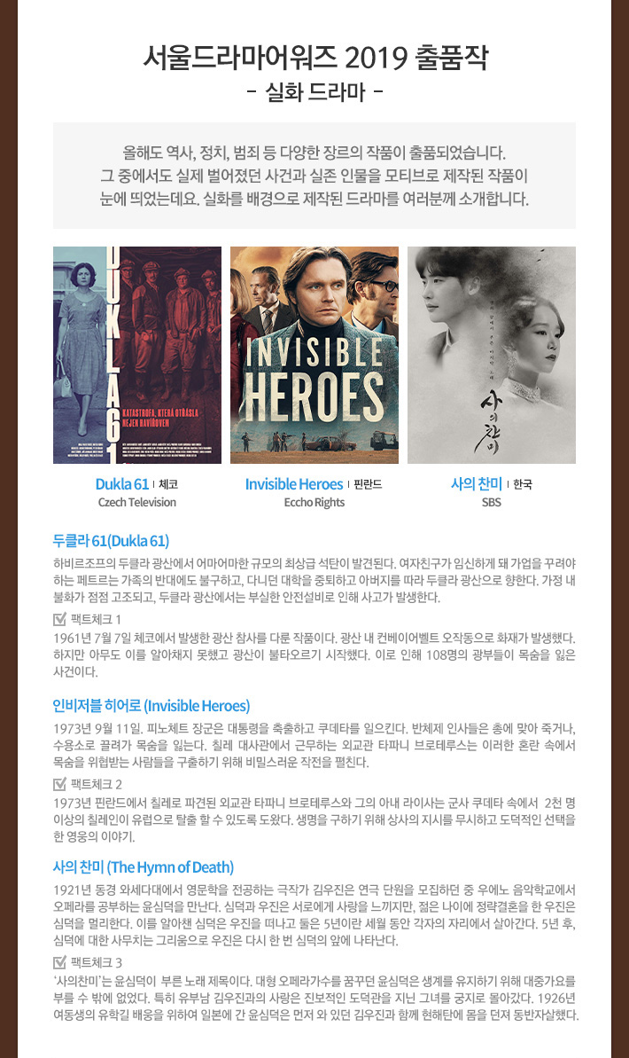 [SDA 2019 웹매거진 #6]서울드라마어워즈 2019 출품작 - 실화드라마 최고관리자 2019-07-10 Views 47,398 이전글[SDA 2019 웹매거진 #7] 서울드라마어워즈 2019 노미네이트 발표 다음글[SDA 2019 웹매거진 #5] 웹매거진 신규 출품국가명 정정 안내 목록